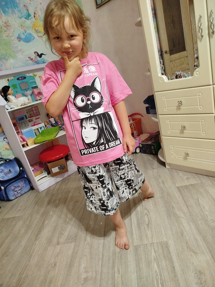Летний костюм оверсайз для девочки — стильный и удобный комплект, идеально подходящий для дома, прогулок и отдыха. Модель выполнена из мягкого и дышащего 100% хлопка, что обеспечивает комфорт в жаркие дни и бережное отношение к коже. Трикотажное полотно приятно на ощупь, хорошо пропускает воздух и не вызывает раздражений, даже при длительной носке.