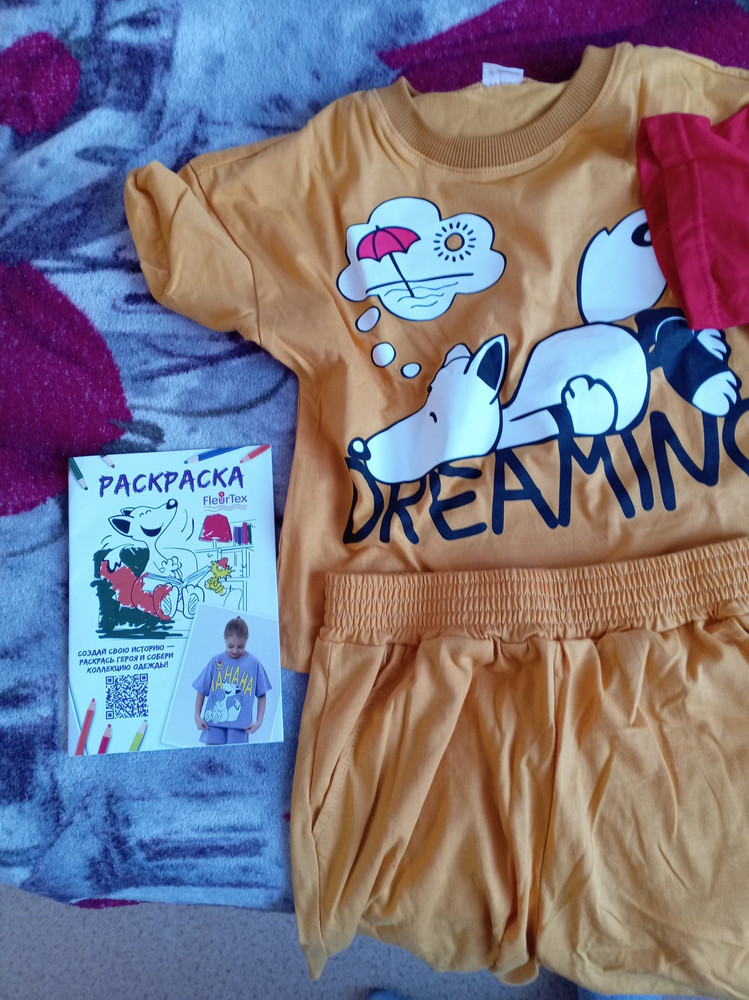 Размер соответствует, расцветка тоже) в подарок положили раскраску!) после стирки не линяет, не садится. Спасибо!)